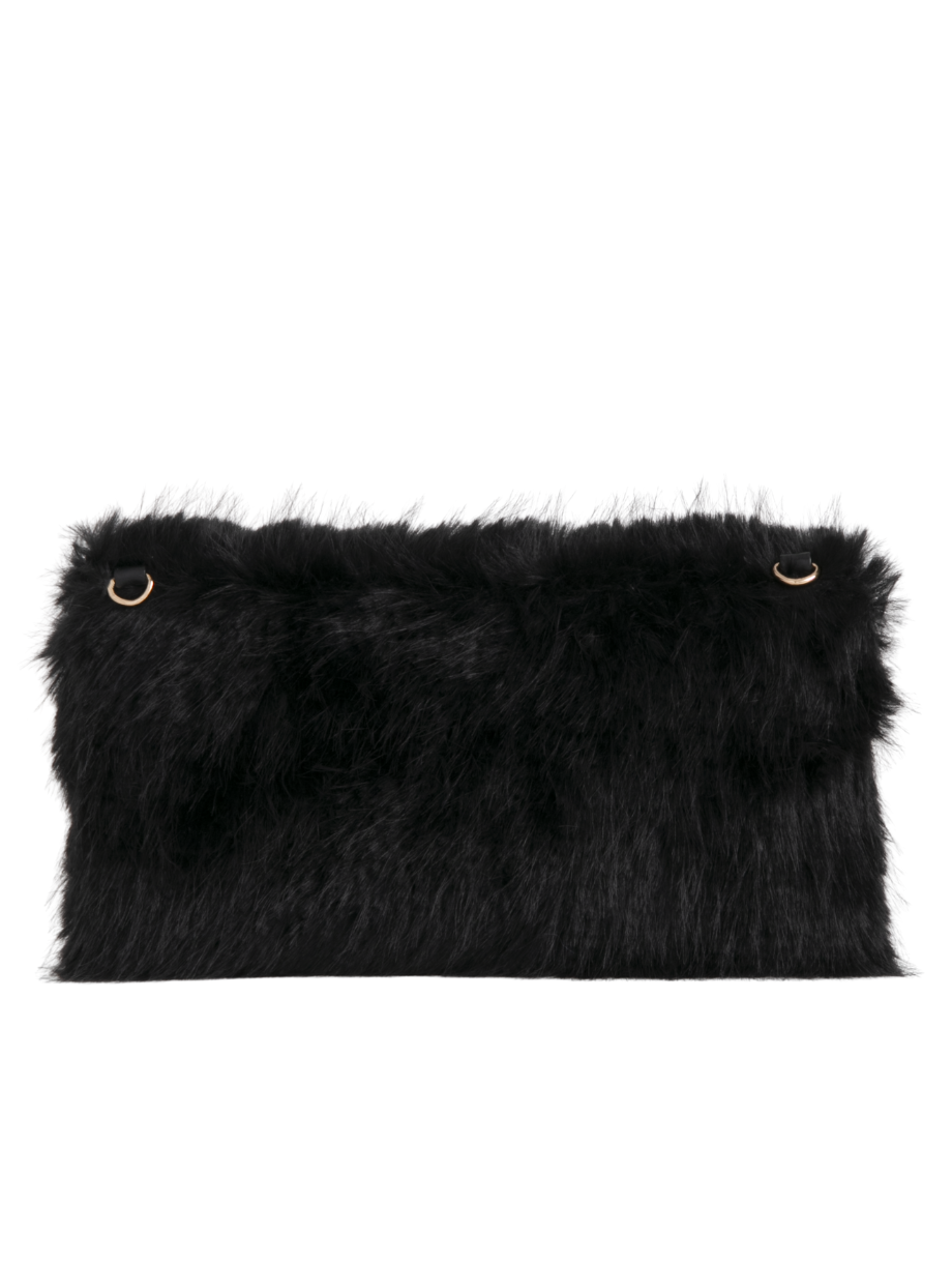 Turn heads with the bold charm of this Black Faux Fur Foldover Clutch Bag. Featuring a soft and fluffy faux fur finish, this statement bag adds instant glamour and texture to your look. Its foldover design keeps it sleek and stylish, which makes it perfect for parties, evenings out, or festive occasions. Pair it with your favorite dress for a standout accessory that’s both fun and fashionable.