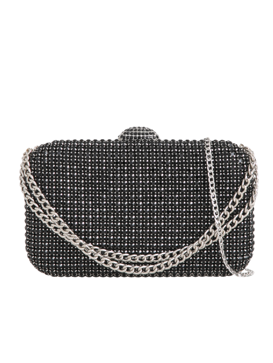 Black Diamanté Embellished Chain Handle Clutch Bag