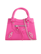 Give your outfit an edgy look with this Blue Faux Leather Buckle Detail Shoulder Bag! Featuring a black faux leather material, with a front zip and studded imitation buckle detail, this will complement any casual outfit. Comes with a detachable chain strap.
